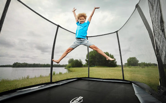 The 410CM rectangular frame provides optimal bounce control and space efficiency—perfect for focused jump sessions, athletic training, and backyard play.