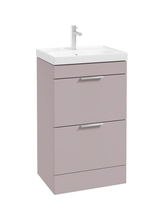 Sonas Stockholm Floorstanding 50Cm Two Drawer Vanity Unit | Matt Cashmere Pink | Brushed Chrome Handle | UF0845